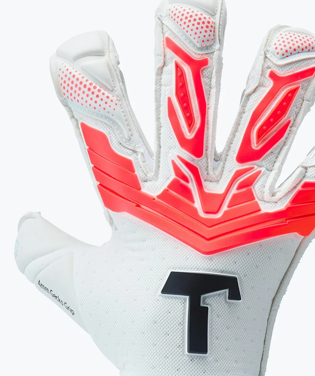 Méga Gecko Grip de 4 mm et matériau EvoZone Plus respirant. Avec une zone de frappe efficace et une sangle élastique en latex T1TAN super solide. Regular Fit confortable pour un maximum de confort.