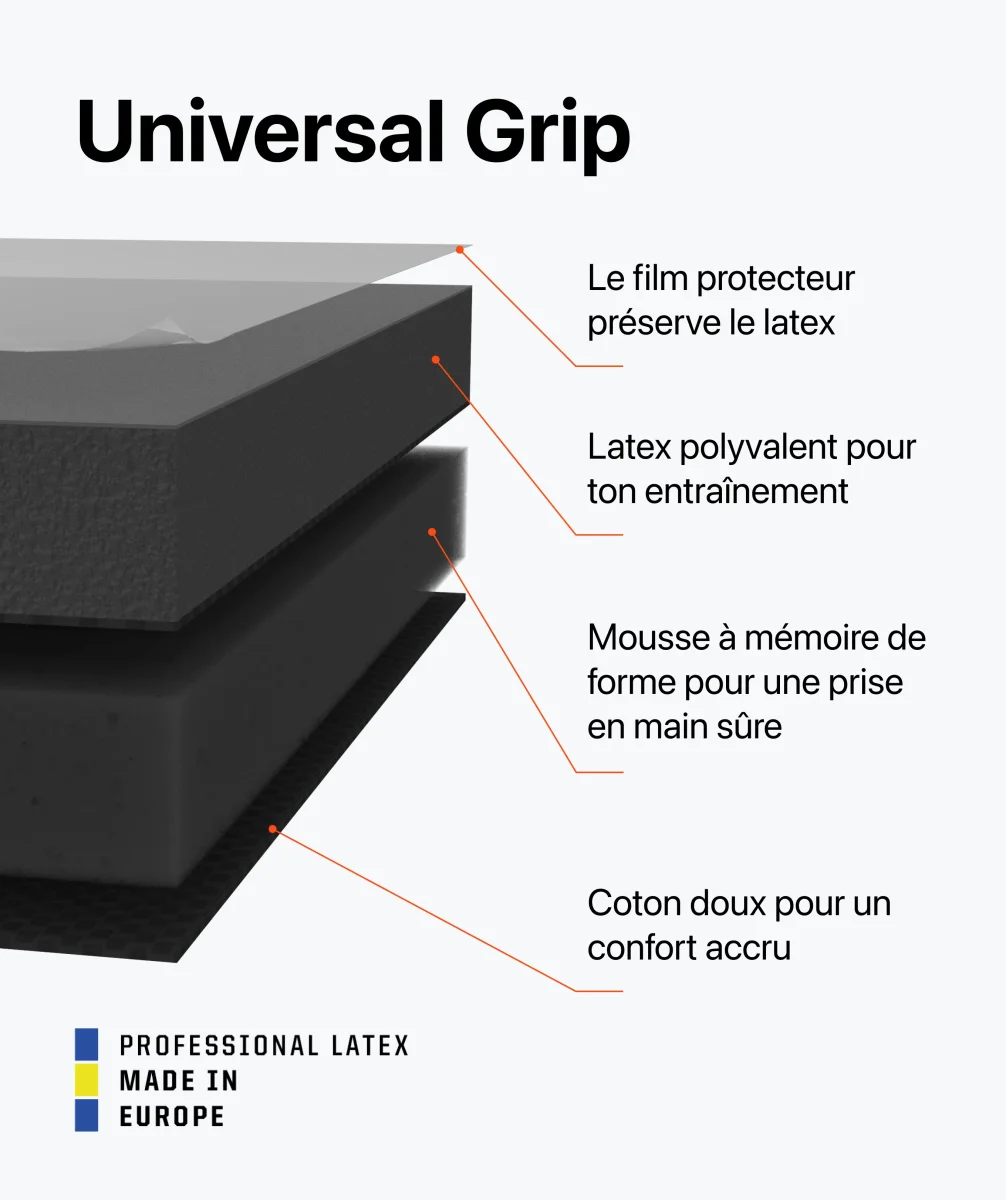 Une forte adhérence dans toutes les situations : le puissant Universal Grip de 3 mm + 5 mm vous offre une forte adhérence et un contrôle supérieur du ballon. -
