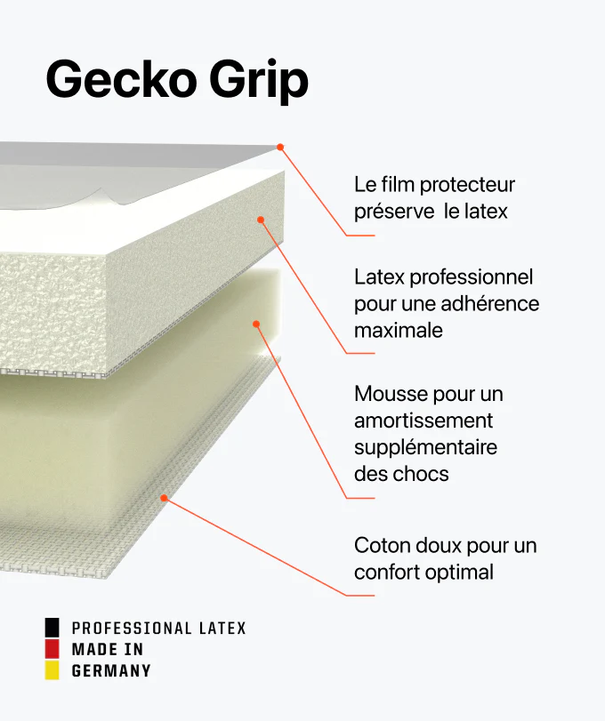 Absolute dominance: the super grippy 4mm Gecko Grip literally absorbs balls in. Extra soft pro grip foam provides extreme grip. For superior cushioning and ball control.