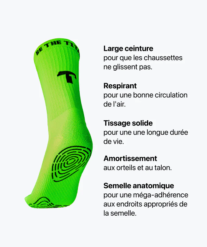 Grip-Grip-Grip hourra. Impossible d’avoir plus d’adhérence. Avec les T1TAN Gripsocks, tu ne glisses enfin plus dans tes chaussures de football. Grâce aux applications antidérapantes sur la semelle au niveau de la plante des pieds et du talon, tu gardes toujours l’adhérence au sol. Comme il se doit pour un gardien de but de haut niveau. Décide du moment où tu dois t’arracher et gratter le prochain ballon.
