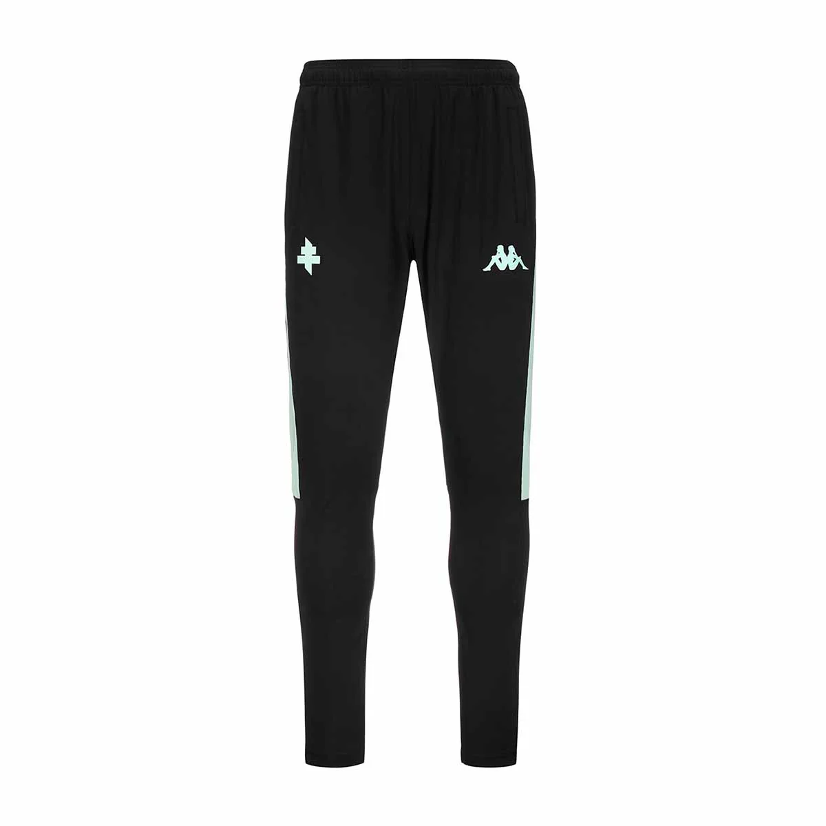 Jogging d’entraînement pour homme en tissu interlock lourd stretch recyclé et avec la technologie HYDRO-WAY PROTECTION. Taille élastique avec cordon de serrage intérieur, poches avec fermeture éclair, empiècements sur les côtés et sur le mollet avec tissu de compression. Logo Omini sur le devant appliqué par transfert thermique. Écusson de l’équipe sur le devant en impression HD.