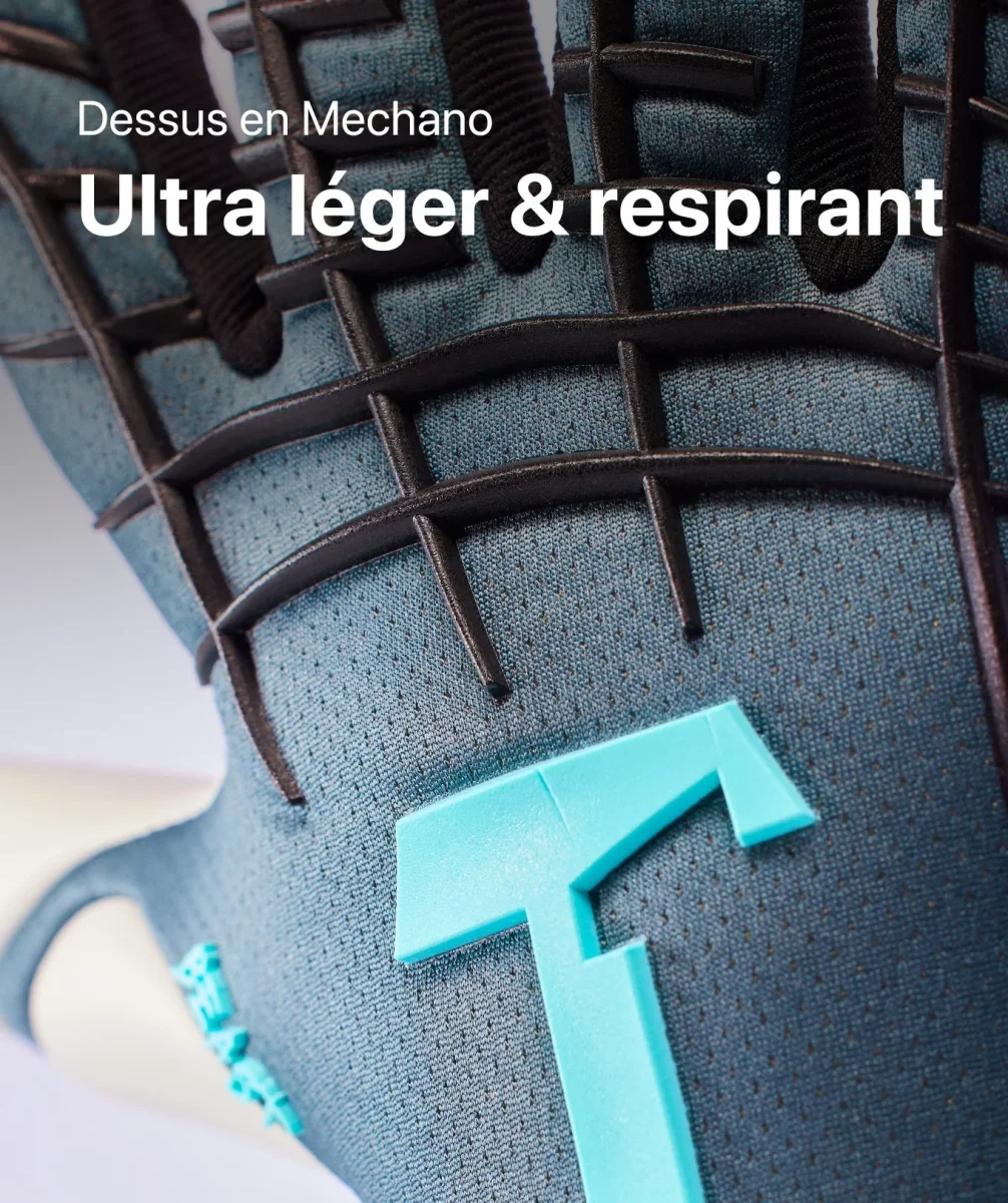 Ultraléger et respirant : le textile performant Mechano 2.0 sur le dessus de la main fait de chaque match un jeu d’enfant. Pour une aération optimale et un confort grandiose. -