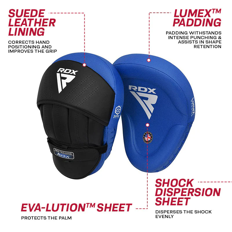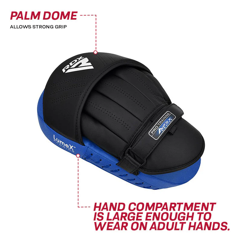 Entraînez-vous pour donner le meilleur de vous-même avec les pattes d’ours d’entraînement APEX de RDX. Conçues avec la technologie de rembourrage LumeXTM pour supporter les coups de poing intenses, pendant les séances d’entraînement éreintantes. L’utilisation d’un cuir de qualité supérieure sur la surface extérieure rend ces protections de boxe résistantes à l’usure et aux déchirures et aide à conserver la forme originale. La conception ergonomique du dôme de la paume de la main avec la boule de préhension aide à gérer les frappes intenses, lors des entraînements de MMA et de boxe.
