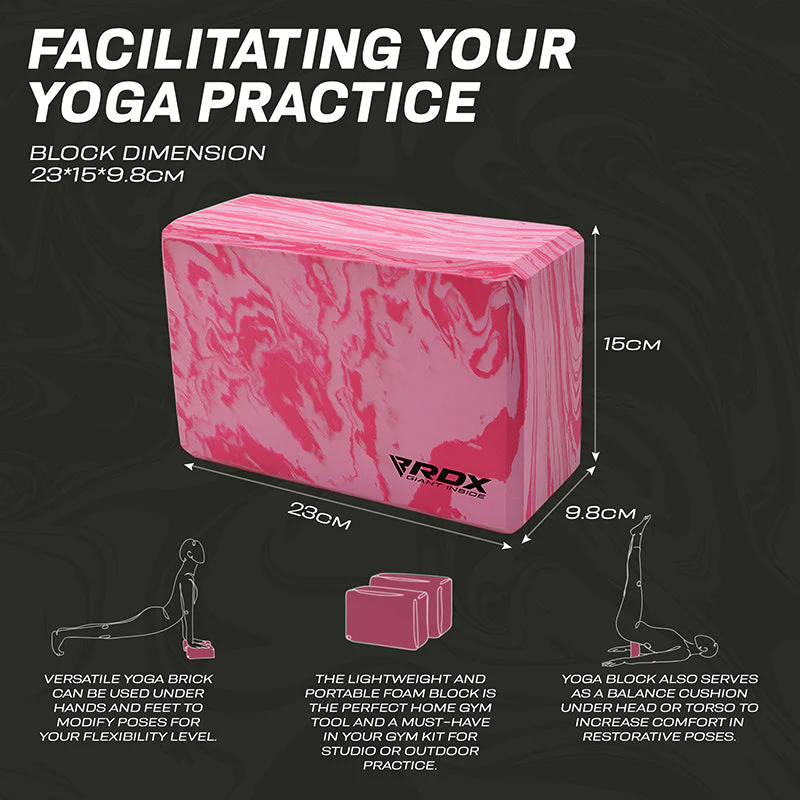 Intégrez cette brique de yoga de taille optimale (23*15*9,8 cm) à votre équipement de sport à domicile et à vos accessoires de yoga pour une plus grande polyvalence dans votre pratique. Conçu pour les yogis débutants et intermédiaires, ce bloc de yoga en mousse robuste offre un soutien solide pour vos postures de pont, et un support confortable pour parfaire votre alignement dans la posture du croissant de lune. Intégrez cette brique de yoga de taille optimale (23*15*9,8 cm) à votre équipement de sport à domicile et à vos accessoires de yoga pour une plus grande polyvalence dans votre pratique. Favoriser un flux d’énergie sain en apportant équilibre et harmonie à votre corps et à votre quotidien, grâce aux blocs de yoga RDX en mousse EVA.