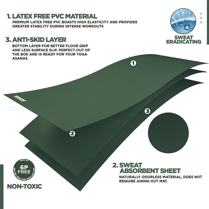 - UNE GRANDE ADHÉRENCE & ABSORPTION DE LA TRANSPIRATION -Le tapis est fabriqué à partir de PVC de première qualité qui offre une bonne élasticité, stabilité et qui évite au tapis de se déformer lors d’un entraînement intense. La texture antidérapante assure une bonne adhérence au sol sans glisser ni déraper pendant les exercices. La technologie à cellules ouvertes permet une absorption efficace de la sueur, rendant la surface facile à essuyer et à nettoyer, évitant ainsi l’accumulation de germes et de mauvaises odeurs.