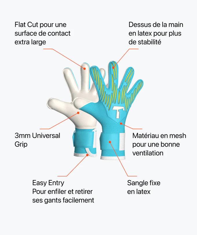 Grâce aux coutures extérieures, la surface de réception est nettement plus grande, ce qui facilite la réception et l’arrêt de la balle. -