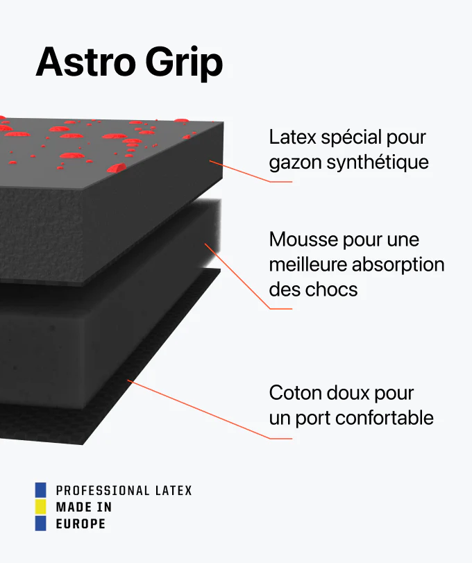 • More resistant adhesive foam for artificial turf – 4mm Astro Grip: The added red dots reinforce the structure of the adhesive foam. The latex has been specially developed for dry conditions and hard surfaces. Ideally suited for artificial turf of all generations.